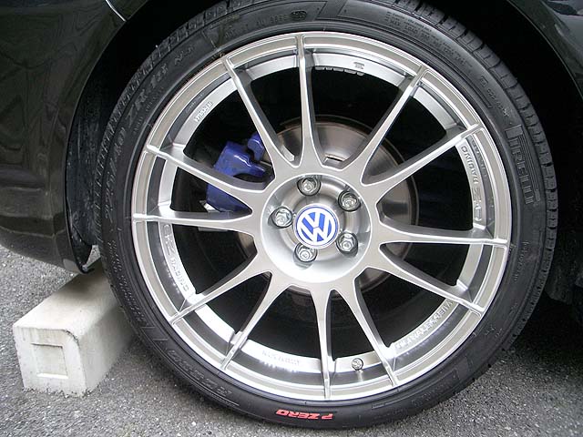 GOLF R32 + OZ ULTRA LEGGERA 8.0-18 ET35 100-5穴+ PIRELLI ROSSO 225-40-18とセットアップ! センターキャップはお客様が VW純正センターキャップを加工されて取付されました。 定価\55,000/1本(税別) この軽さでこの価格。納得の逸品です。 |